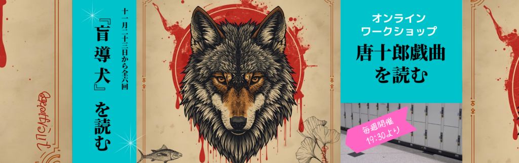 一つの作品を参加者のみなさんと本読みをしながら、魅力的な科白のおもしろさはもちろん、難しい科白の意味、その中に隠れてる登場人物の思いなど、時に唐さんから直接伺ったお話などを交えながら、徹底的に解説していきます!このワークショップを受ければ、異界の出来事は現実に。中身が分かってより一層面白い。そんな唐十郎作品に出会えます。