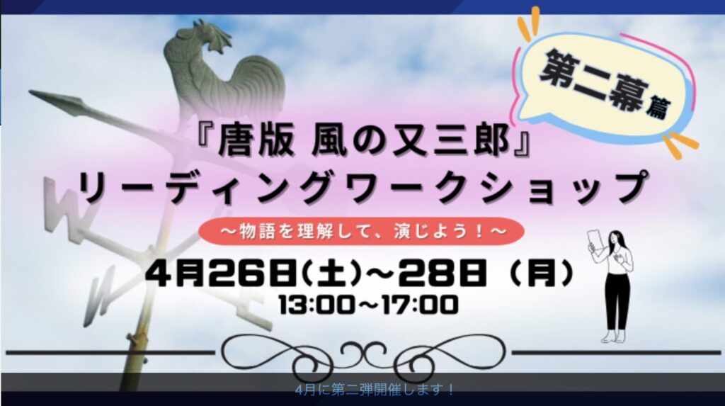 2/8(土)4月に『唐版 風の又三郎』第2幕リーディングWSやります!